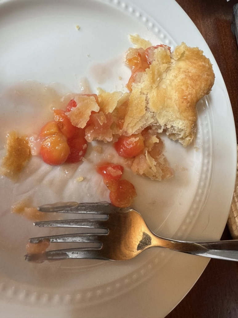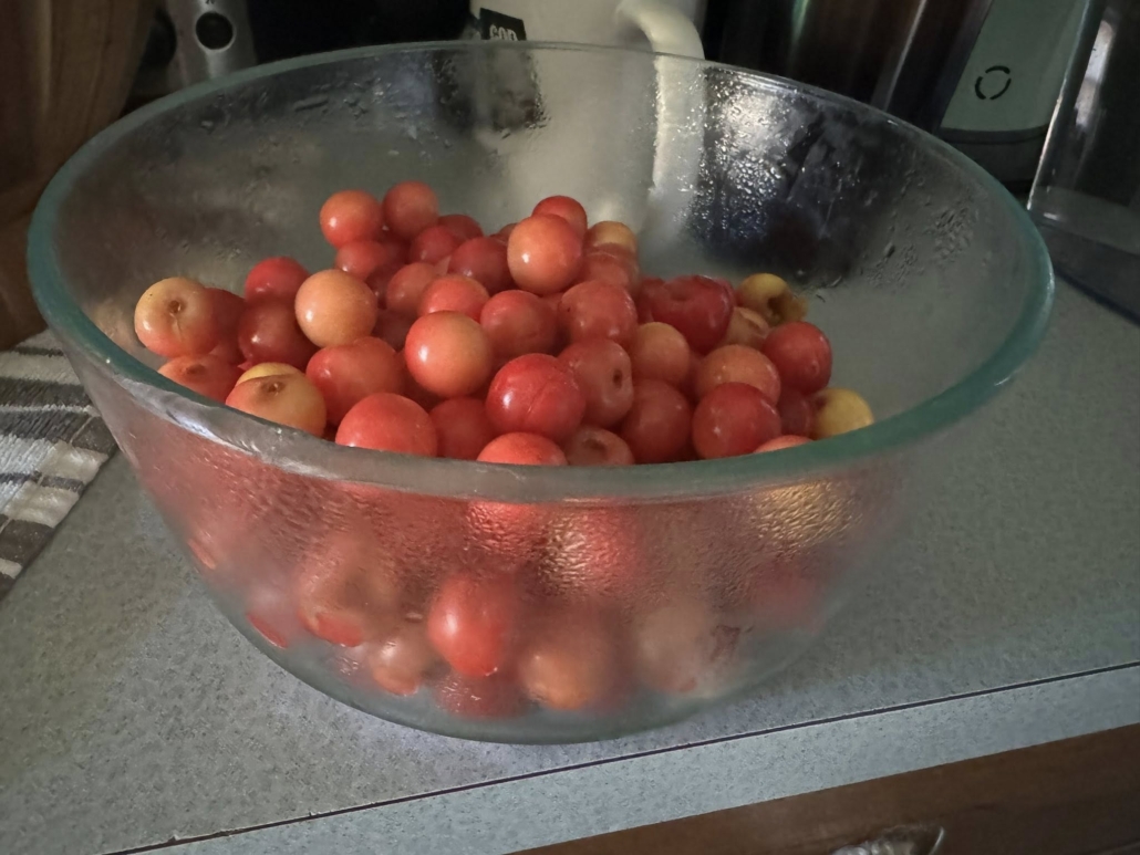 Three years ago, I planted a cherry tree knowing it would need time to establish itself before producing a lot of fruit. This year it’s yielding its first bumper crop, and the inaugural pie I made from it is positively faaaabulous. ??